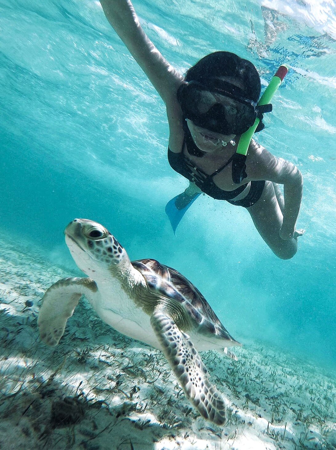In questo posto, chiamato Crystal Beach, è possibile immergersi con loro, con maschera e boccaglio esplorando i fondali limpidi, ancor più chiari e nitidi quando la forte luce del sole caraibico li colpisce dall’alto.