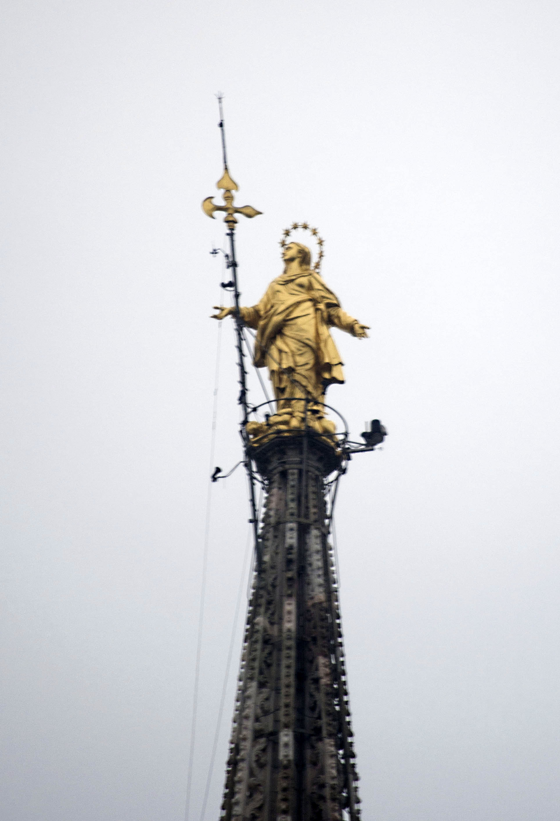 Colonnine, statue, bassorilievi e guglie svettanti; un complesso di arabeschi e vetrate eretto in onore di Santa Maria Nascente, la Madunina che, realizzata in rame, domina Milano dall’alto del tetto del Duomo.