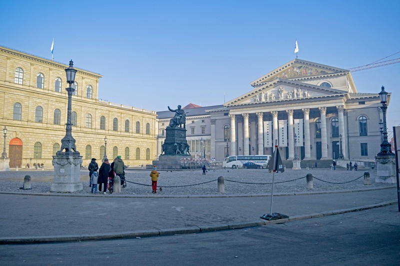 Da un lato si affaccia sulla Max-Joseph-Platz, una riproduzione di Palazzo Pitti di Firenze, proprio accanto al Teatro Nazionale.
