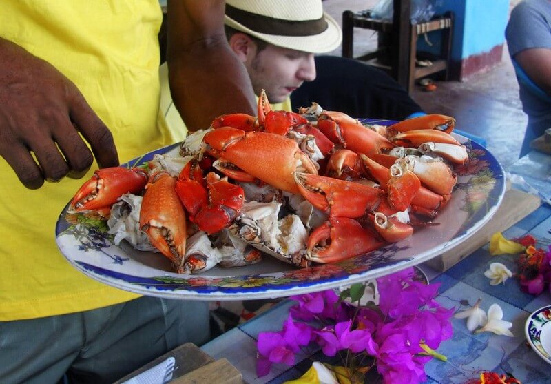 Granchio e gamberoni, verdure al curry e riso al cocco, per un’esplosione d’Africa in bocca, per la gioia delle mie papille gustative.