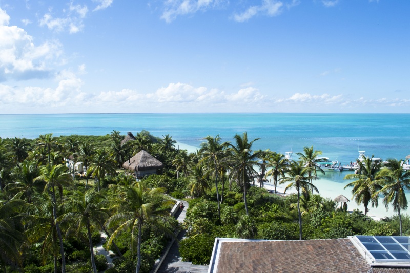 Dopo circa tre quarti d’ora di navigazione, spumeggiando veloci tra le onde, eccoci attraccare all’isola; un paradiso lungo 8,75 km, totalmente disabitato ed incontaminato dove le acque del Mar dei Caraibi si uniscono a quelle del Golfo del Messico.
