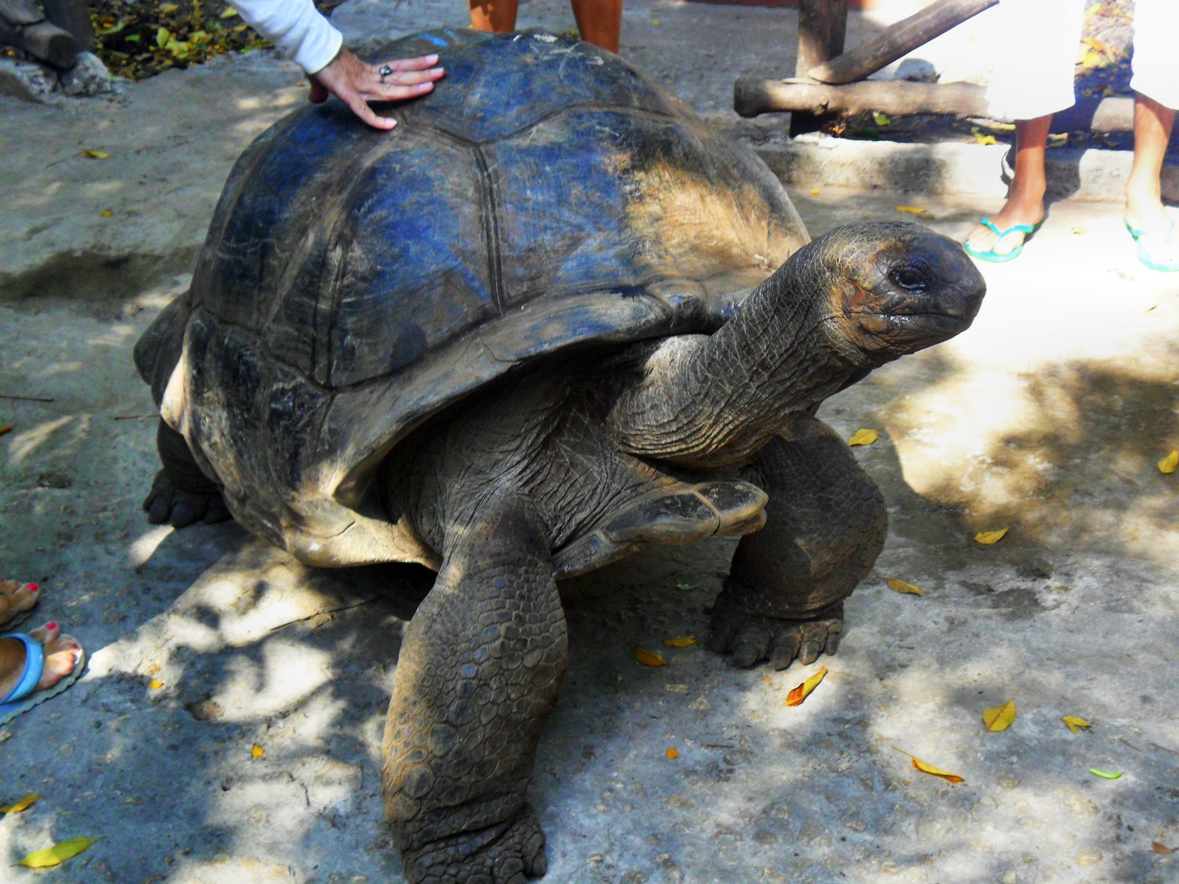 Serenità che diventa entusiasmo quando scopriamo la vera attrazione dell’isola: un piccolo allevamento di tartarughe giganti! Gli animali se ne stanno placidi in acluni recinti dai quali possono tranquillamente uscirsene così da passeggiare lentamente tra i vialetti insieme a noi, incuriositi visitatori. Le accarezziamo, ci giochiamo con rispetto e ammirazione e ci stupiamo di fronte al loro atteggiamento docile e pacato. Alcune sono giovani, piccole, altre sono dei veri e proprio colossi…addirittura di CENT’ANNI!