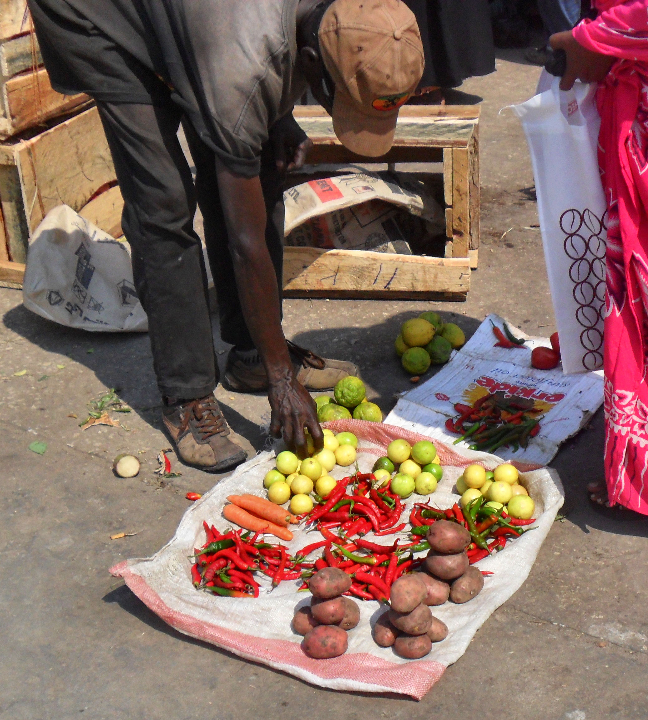 Un accalcarsi di bancarelle di ogni genere, di venditori su di giri che,schiamazzando, cercano di attirare la nostra attenzione. Frutta, verdura, oggettistica e pollame; carne cruda pendente dai soffitti, l’acre odore del pesce rancido e il belare di qualche povera capretta che, legata ad un rimorchio, va incontro al suo triste destino.