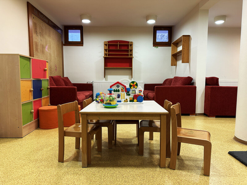Per i più piccoli, lettino con le sponde in camera, su richiesta, seggioloni a disposizione nella sala ristorante nonché una bella area giochi al piano terra, con scivoli e tanti divertimenti.