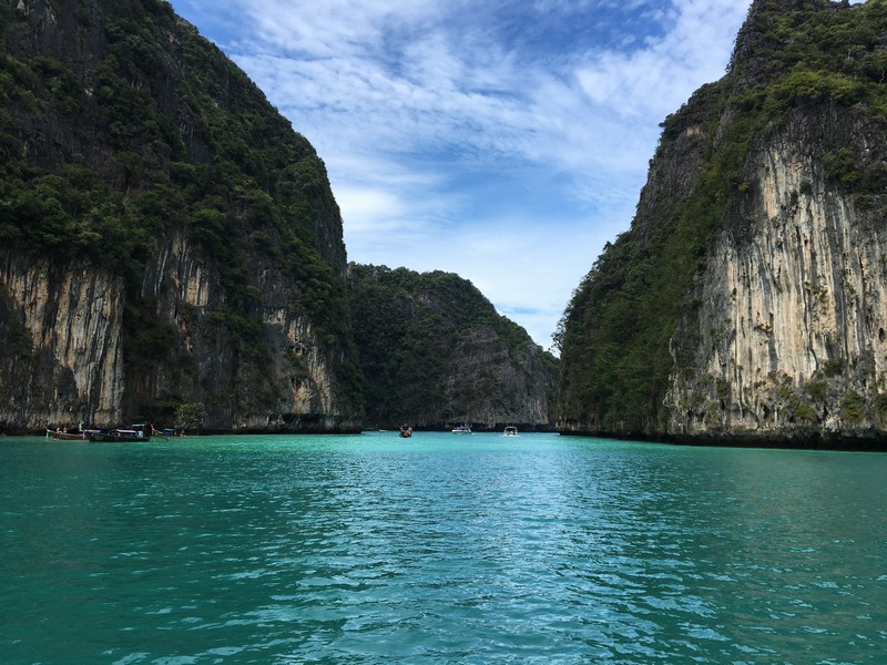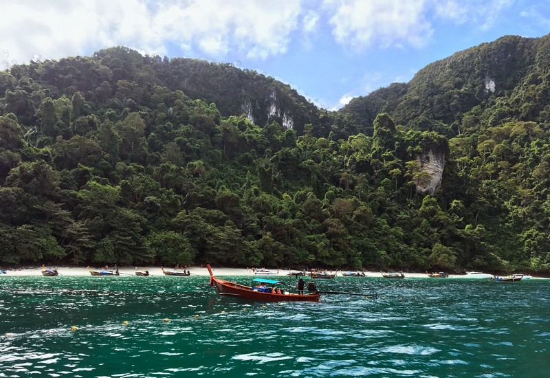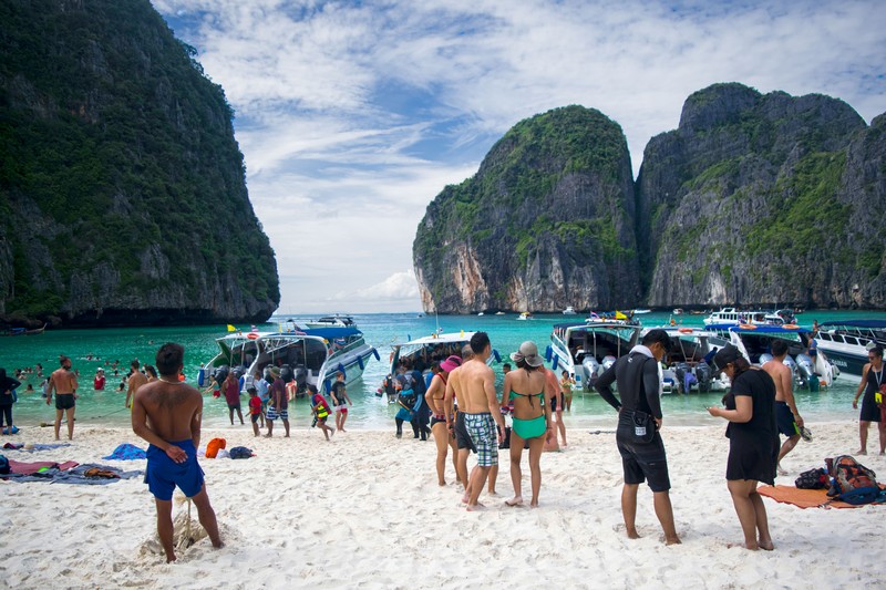 La verità è che questo gioiellino, famoso per essere stato il set del film “The Beach” con Leonardo di Caprio, è talmente rinomato da essere costantemente affollato da un mucchio di visitatori che si accalcono con selfie-stick, borsoni e asciugamani sulla piccola spiaggia, delimitata da una schiera di imbarcazioni parcheggiate addirittura in doppia fila.