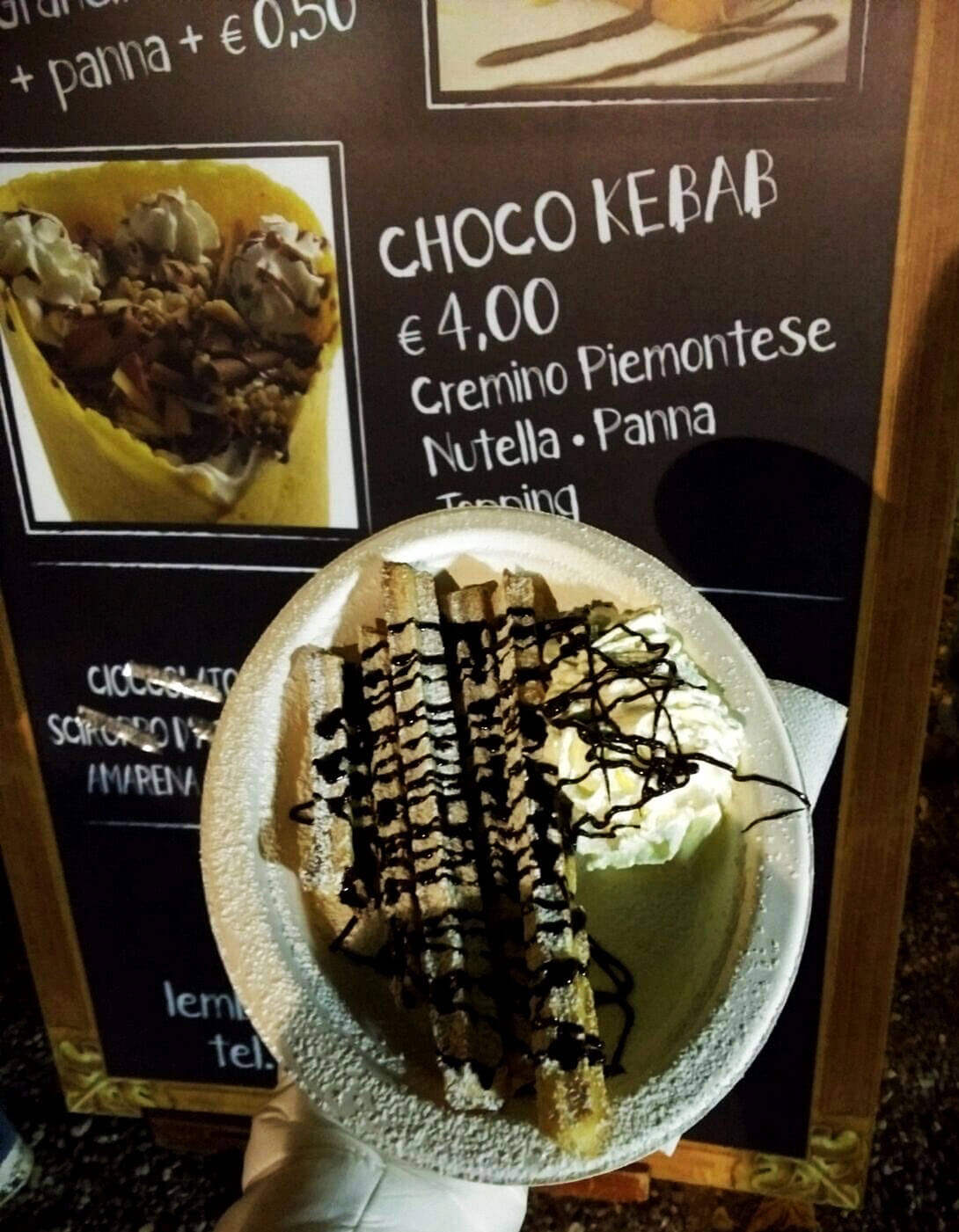 Scelgo le goloserie del Lembo Bistrot che tra cialde, glasse, granelle e l’originale choko kebab attira più gente di quanta se ne possa immaginare.