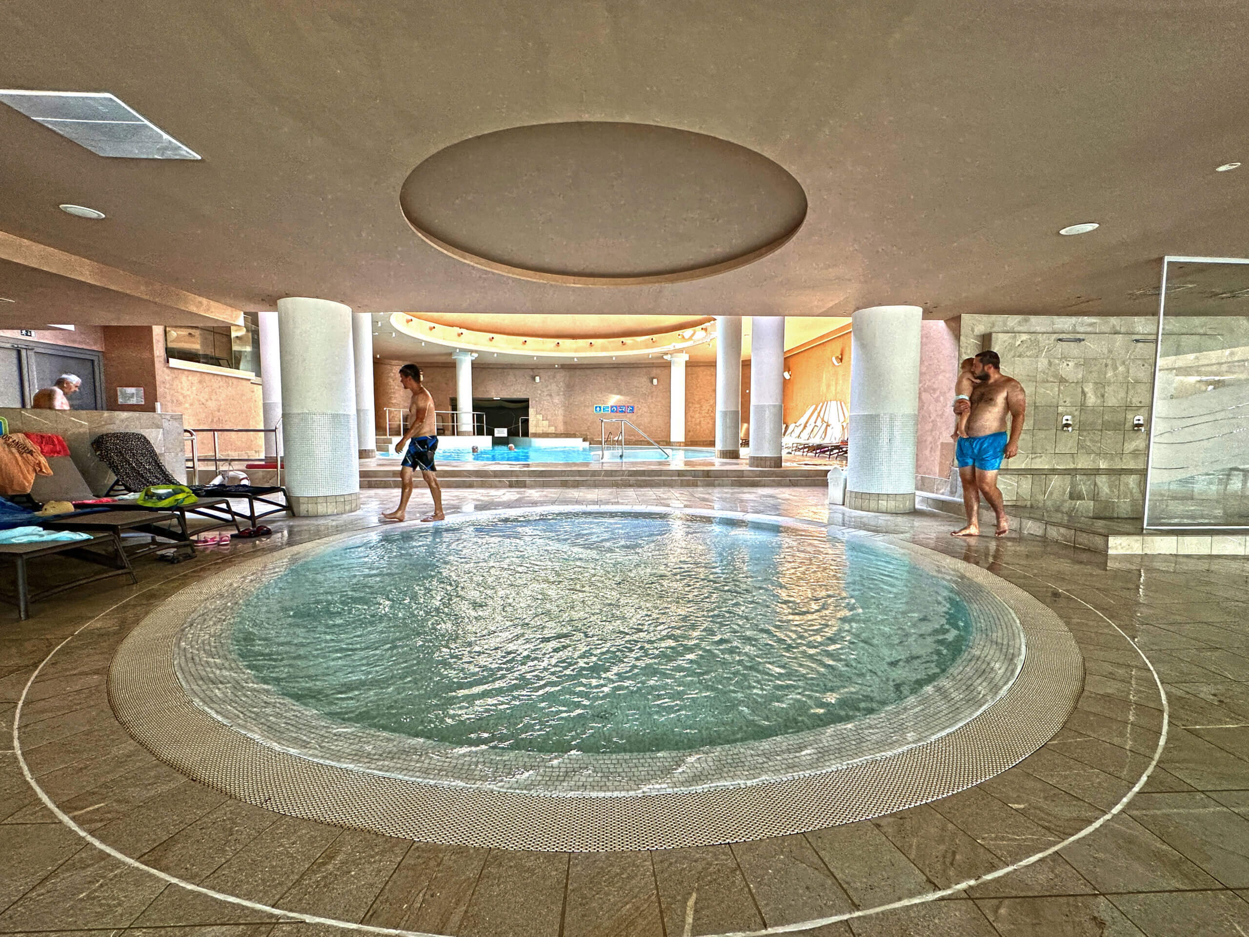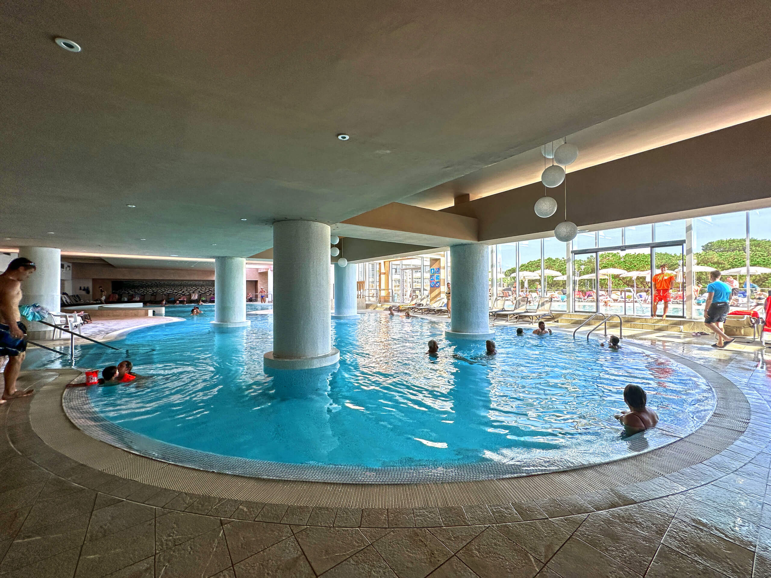 La struttura ospita due piscine: una interna, molto ampia e con acqua di mare ed una esterna, per i mesi estivi, circondata da ombrelloni e sdraio. Dentro, c’è inoltre una piccola vasca di acqua bassa, perfetta i bimbi.