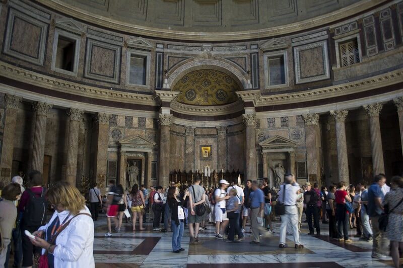Si rimane di stucco guardando verso l’alto, all’interno di questo importantissimo monumento di Roma, dedicato a tutto gli dei e commissionato da Marco Agrippa durante il regno di Augusto.