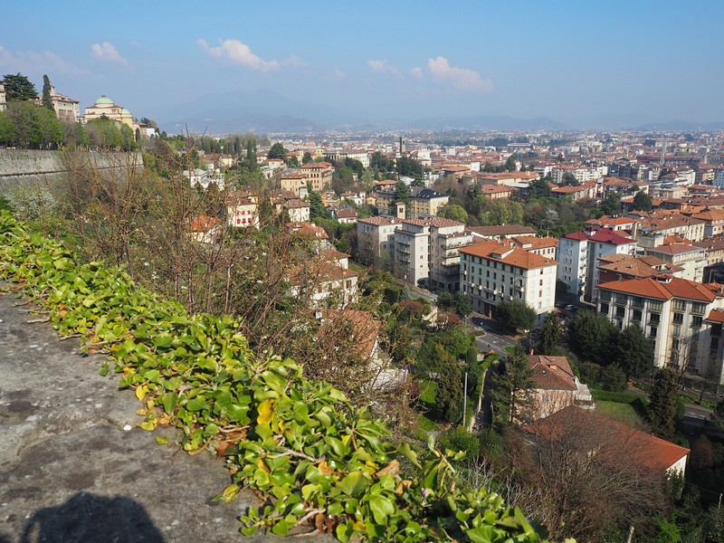 La vallata si apre ai miei piedi e, in mezzo a un tripudio di verde, vedo Bergamo Di Sotto in tutta la sua estensione, con i tetti rossi e le strade che, da lì, paiono quasi deserte.