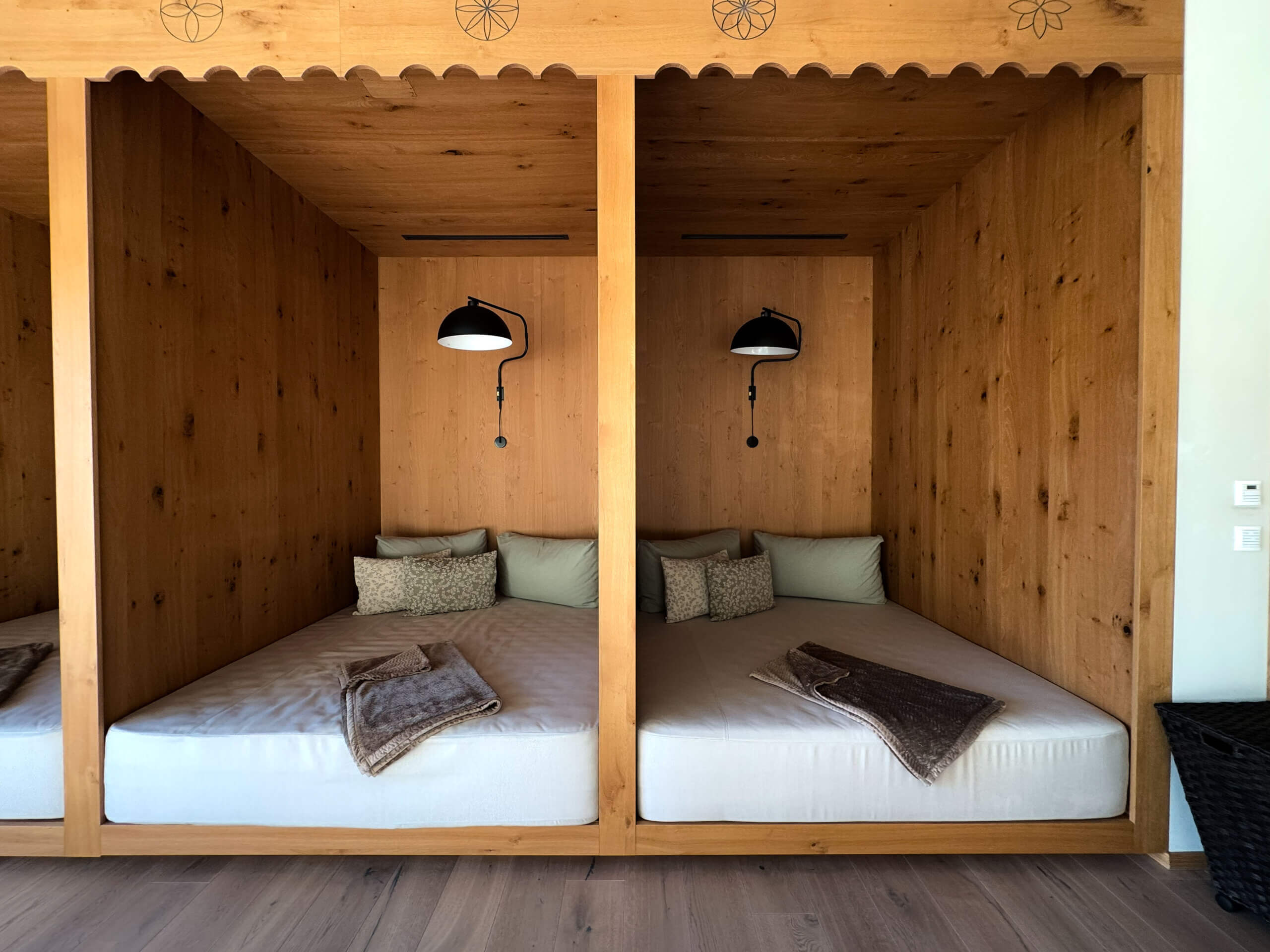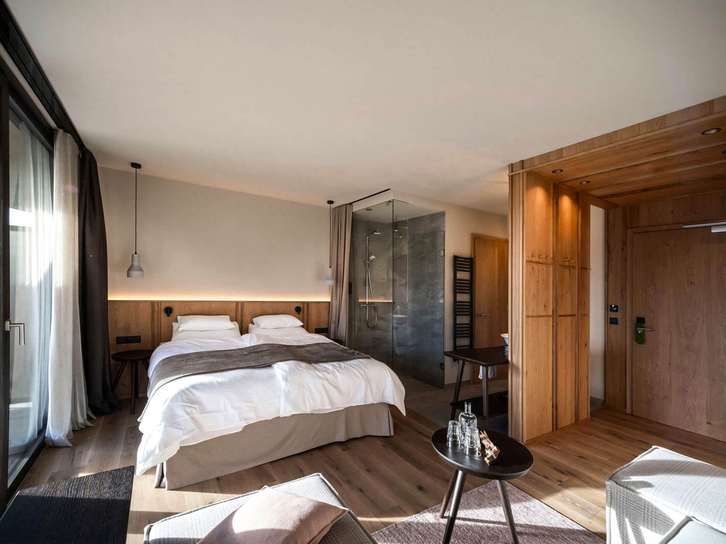 Sono 17 in tutto le camere dell’Hotel Gfell, delle piccole grandi bomboniere che – anche in questo caso – vedono come protagonista la natura. Tutte infatti godono di una favolosa vista sul paesaggio e le 12 collocate al piano inferiore hanno accesso diretto al prato, senza barriere o recinzioni.