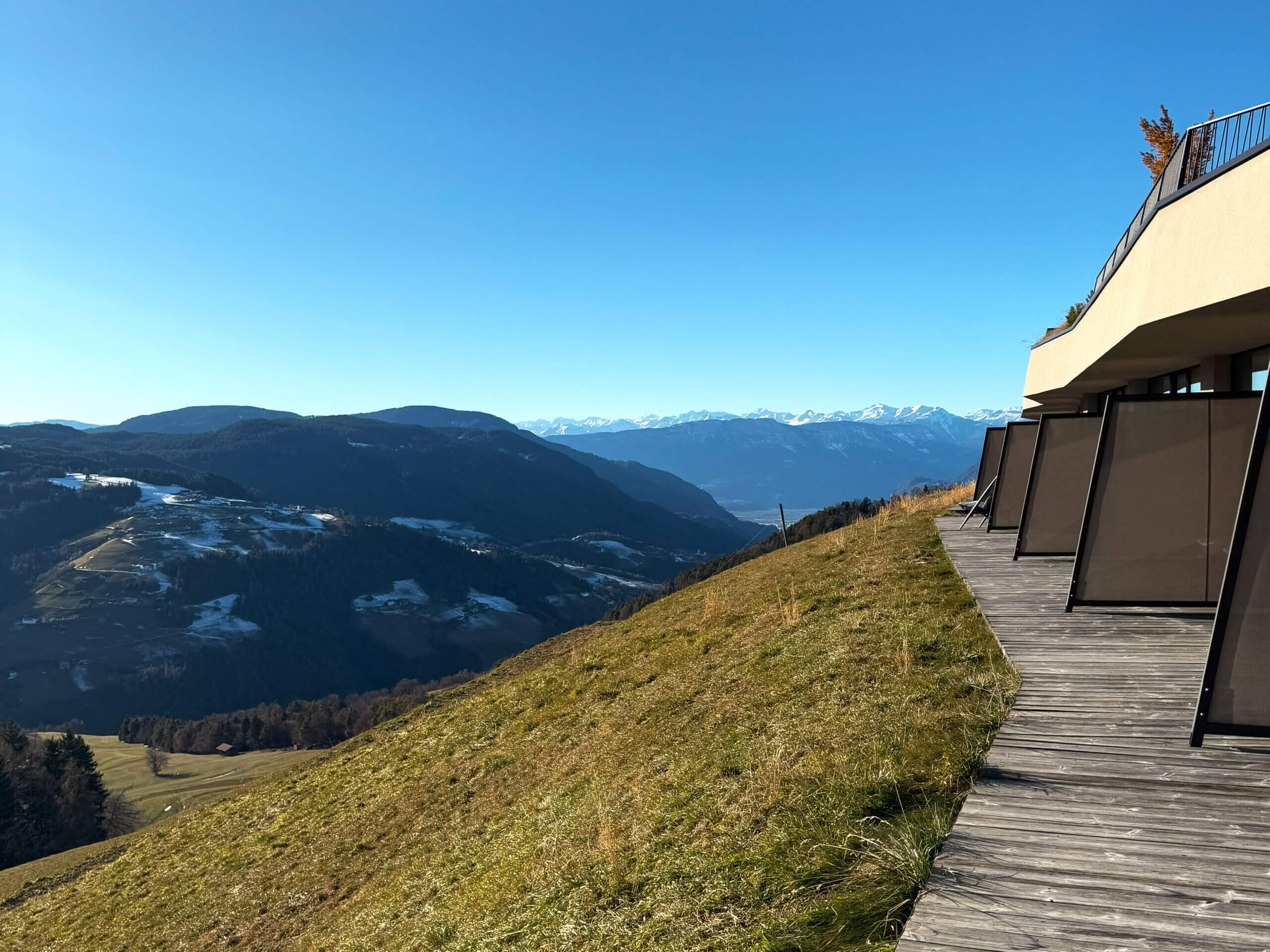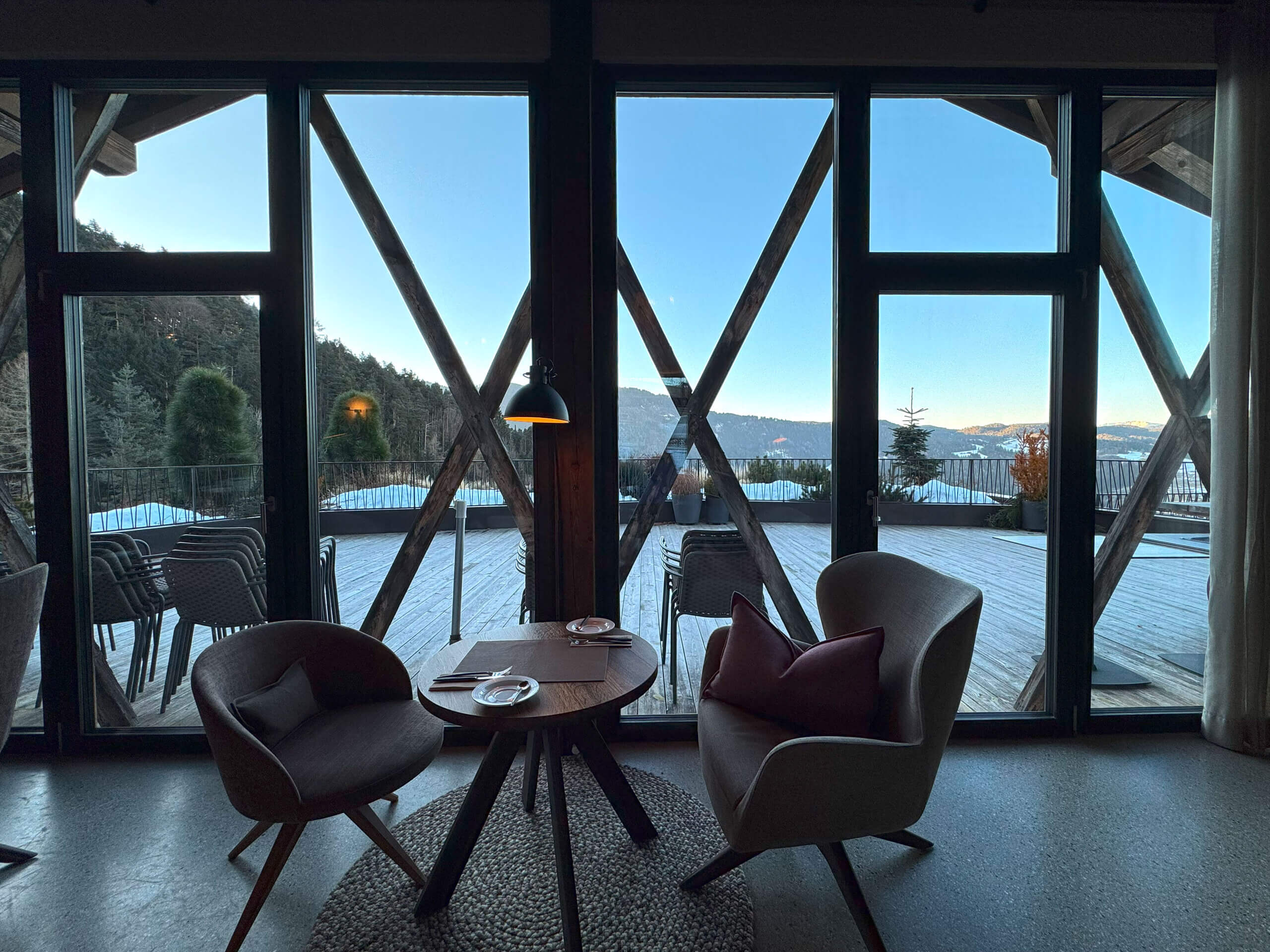 Si chiama Schönblick, ossia “bella vista”, il ristorante dell’Hotel Gfell che, per l’appunto, dalla sua terrazza offre agli ospiti un panorama straordinario sulle Dolomiti di Brenta.